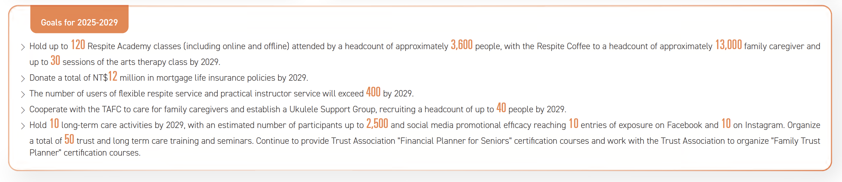 Long-term care is an increasingly popular topic in an aging population with a low birth rate and most seniors or disabled persons in Taiwan unable to care for themselves are often being cared for by their family members. As a result, these family members face tremendous stress and some are even encountering problems at work or facing economic or social issues, while often being overlooked by society. Therefore, since 2013, BNP TCB Life and Taiwan Association of Family Caregivers (TAFC) have been working together to introduce various measures and activities that support and care for family caregivers.