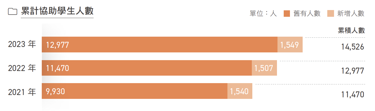 高風險家庭之青少年發展也是合庫證券持續關注的重點,2023 年透過捐贈社團法人中華民國更生少年關懷協會及法務部雲林監獄,除幫助觸法少年復歸家庭與學校,亦補助收容人子女獎助學金,激勵其勇敢面對未來,並期待社會接納收容人家屬,不再有歧視的眼光。