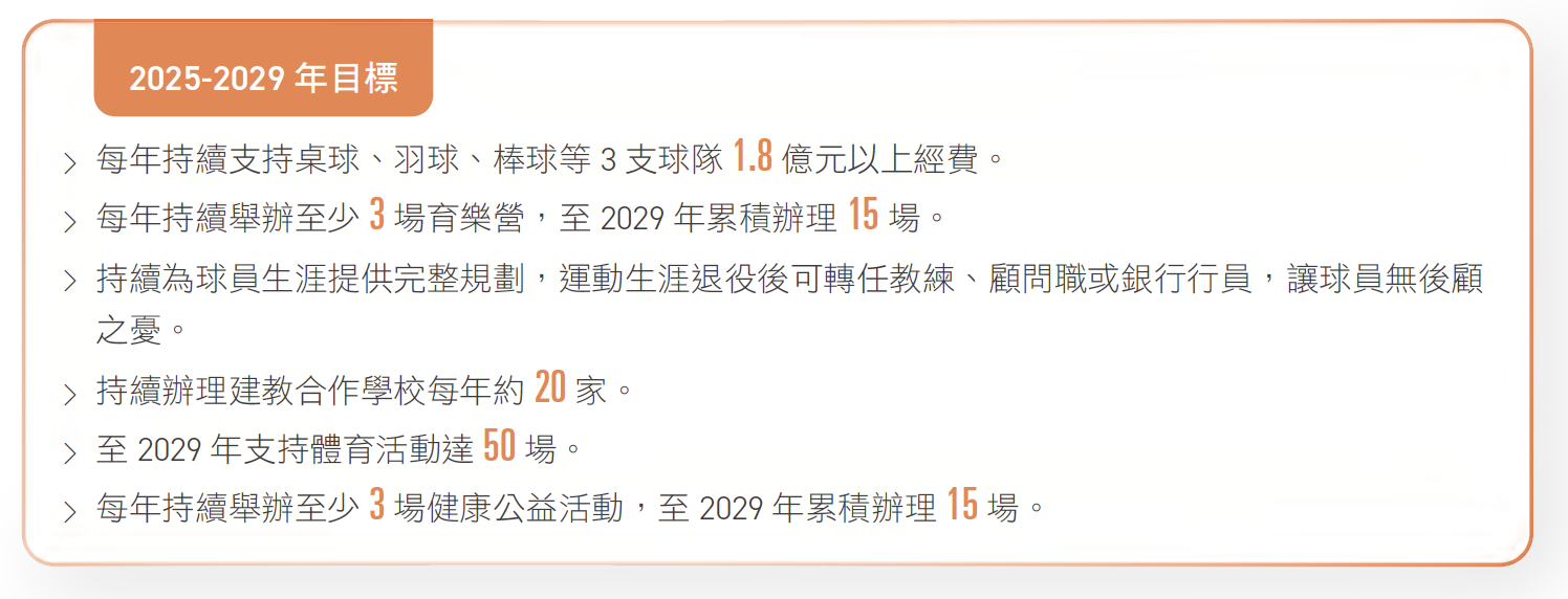 合庫除致力培育體育人才、提升台灣國際體育競爭力外,也透過推廣運動風氣,鼓勵員工重視身心健康養成運動習慣,並舉辦各類運動賽事,帶動全民運動風氣。